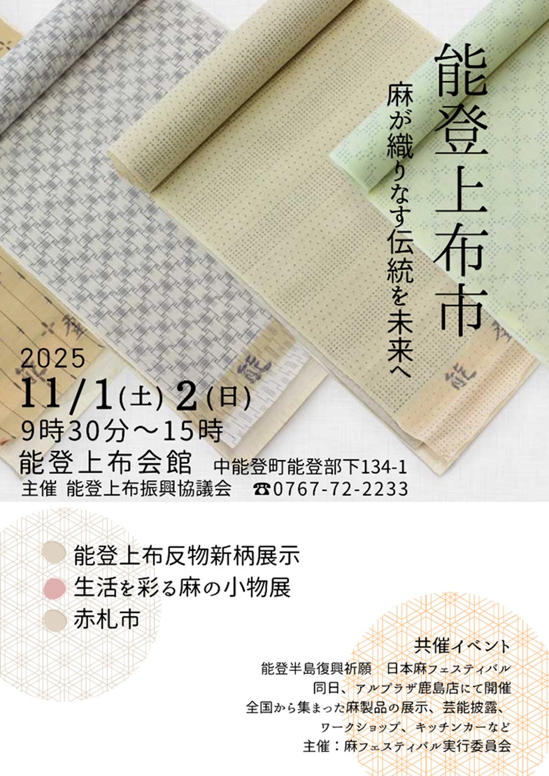 【2025年11月1日(土)~2日(日)】「能登上布市 ―麻が織りなす伝統を未来へ―」開催のお知らせ