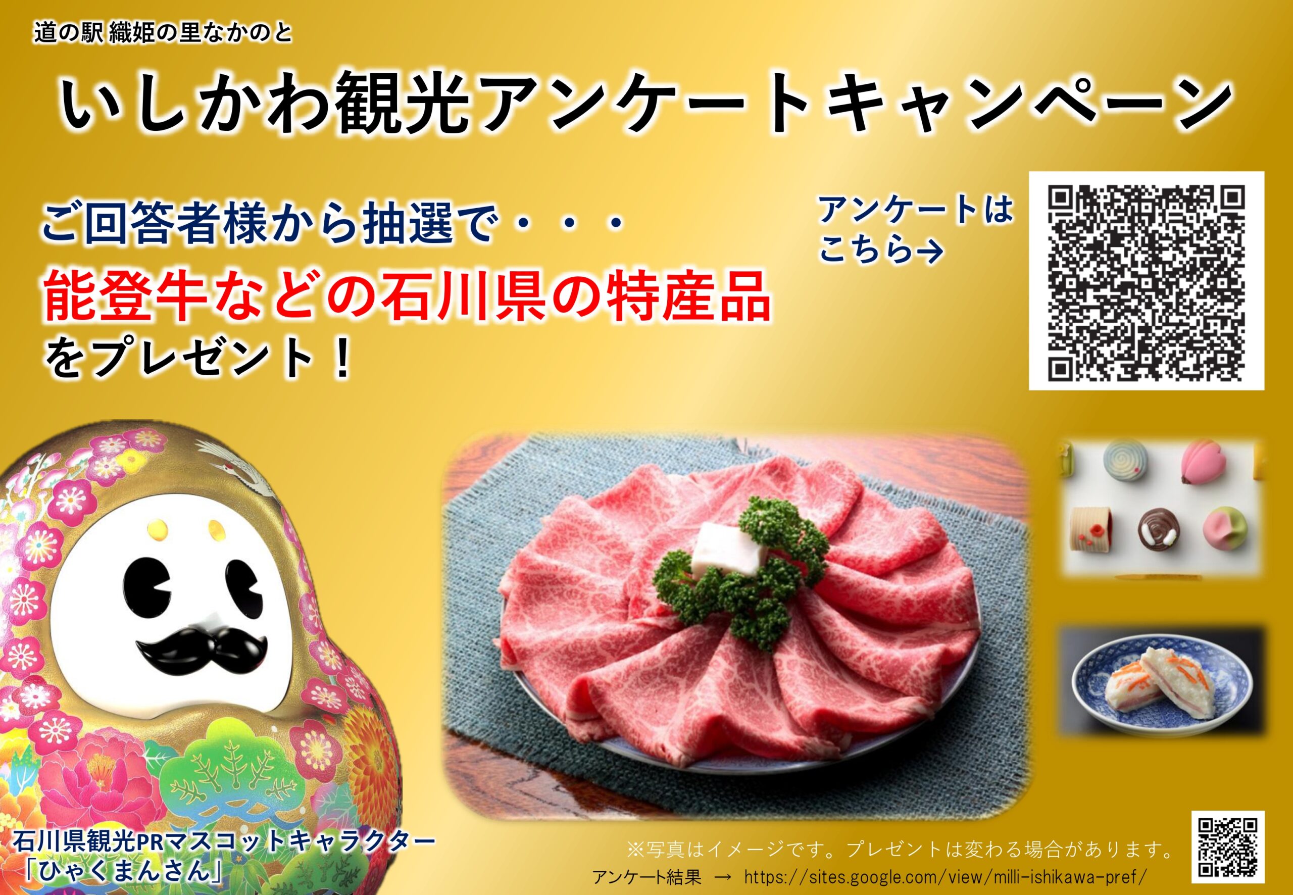 道の駅 織姫の里なかのとにて、「いしかわ観光アンケートキャンペーン」実施中です。