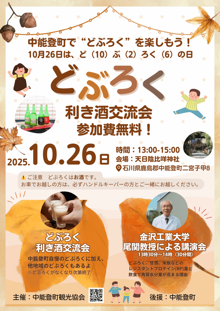 中能登町では、毎年恒例の「どぶろく利き酒交流会」を開催します。